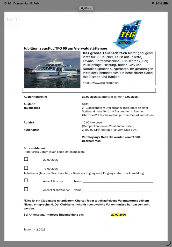 Jubiläum 2026 <<<zurück zur Startseite Für die Anmeldung schickt einfach ein Mail an *protected email* oder antwortet auf das Einladungsmail. Info Jubiläum TFG 66Herunterladen